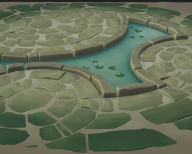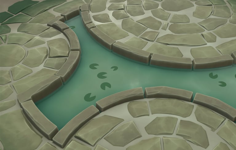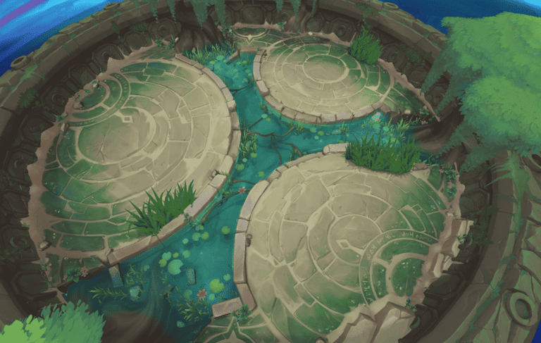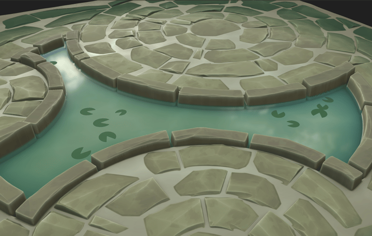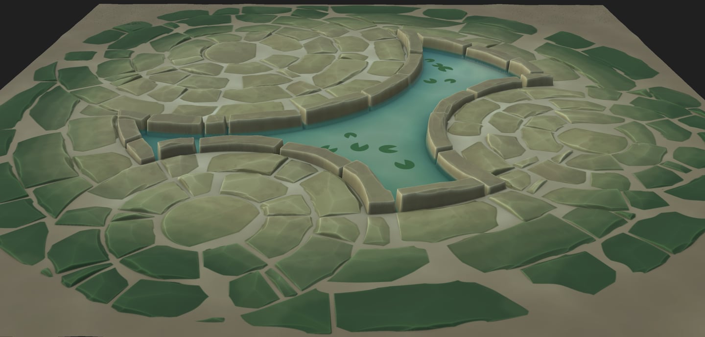 This is a material inspired by the Lotus flower map in League of Legends' Arena mode. I've always thought the map was very visually striking and wanted to try and tackle creating a fully procedural painterly material.
