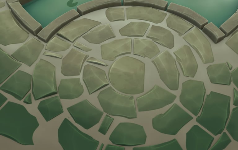 I wanted to keep the material true to the stylisation of the original piece so I kept the rocks smooth and with edge highlights. I did miss out a few elements of the original map, such as the markers that direct the player to the Hexgates as I felt these were nice additions but not necessary for the scope of this project as I had aimed to complete this project over 2 days, which I managed to achieve.